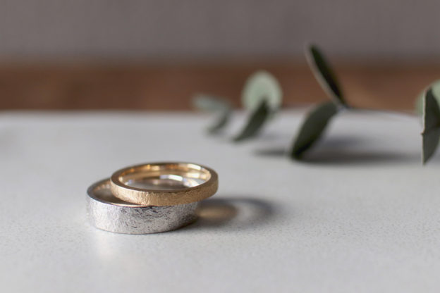 石目テクスチャーで他とはちょっと違う結婚指輪を